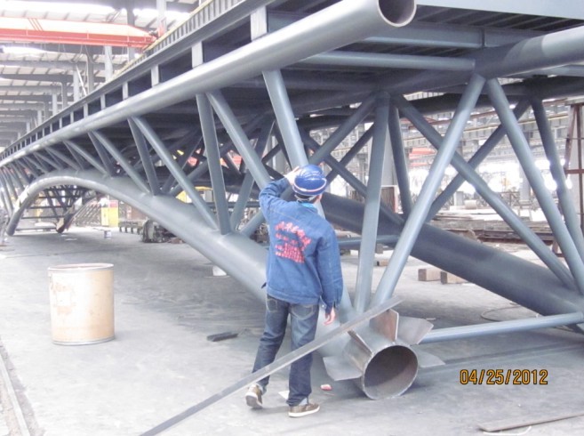(戰(zhàn)地記者 榮霞)江安河鋼橋廠內(nèi)已制作完畢,于今晚出廠,進(jìn)入安裝程序.