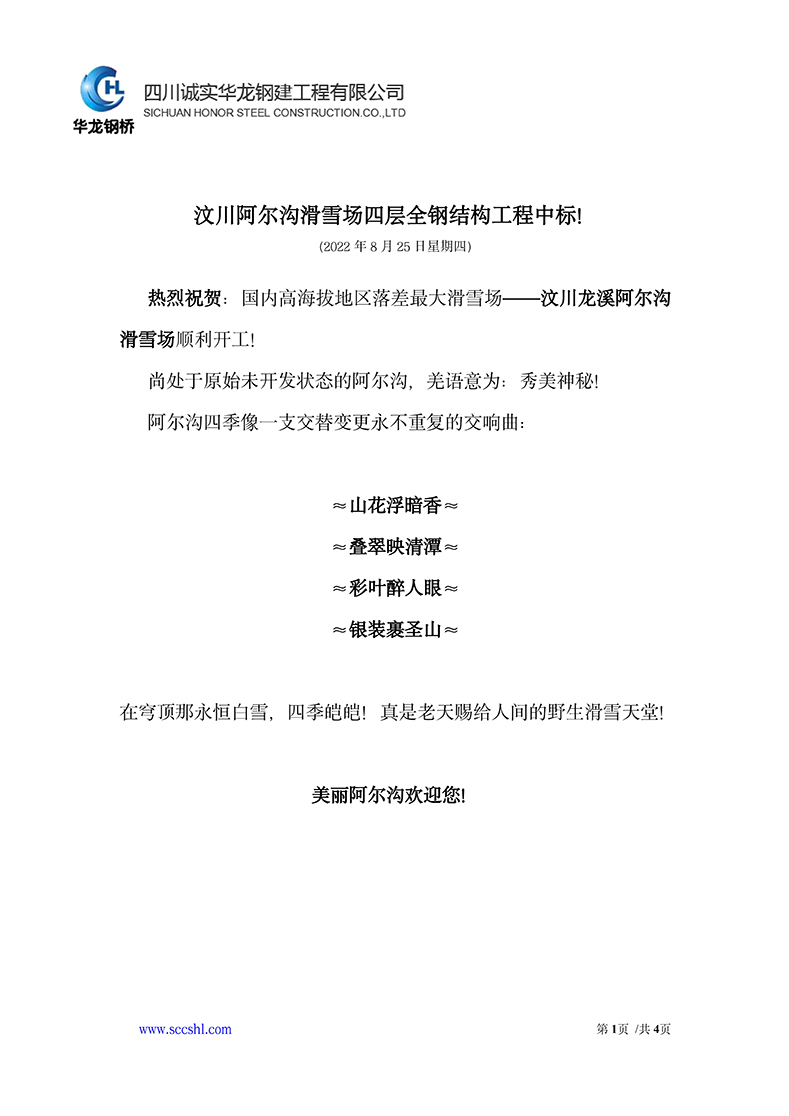 汶川阿爾溝滑雪場(chǎng)四層全鋼結(jié)構(gòu)工程中標(biāo)