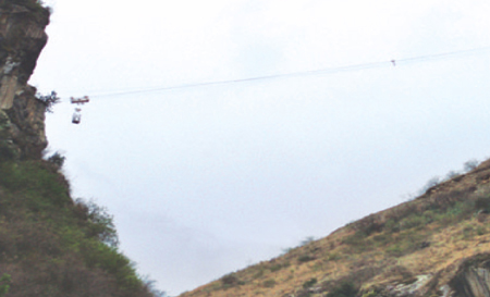 架空索道的組成設(shè)備及功用 ① 鋼索:供跑車行走、牽引跑車運(yùn)行、捆掛木材等;    ② 跑車:吊運(yùn)木材的裝置;    ③ 絞盤機(jī):索道的動力設(shè)備;    ④ 支架(活立木、木架或鋼支架等):起支撐承載索保持懸空狀態(tài);    ⑤ 鞍座(直線或拐彎鞍座):承托承載索且減少其撓度;    ⑥ 止動器:固定在承載索上,使跑車在預(yù)定位置停止,以便拖集木材和卸材;    ⑦ 滑車:承托、轉(zhuǎn)向、拉緊鋼索等作用。