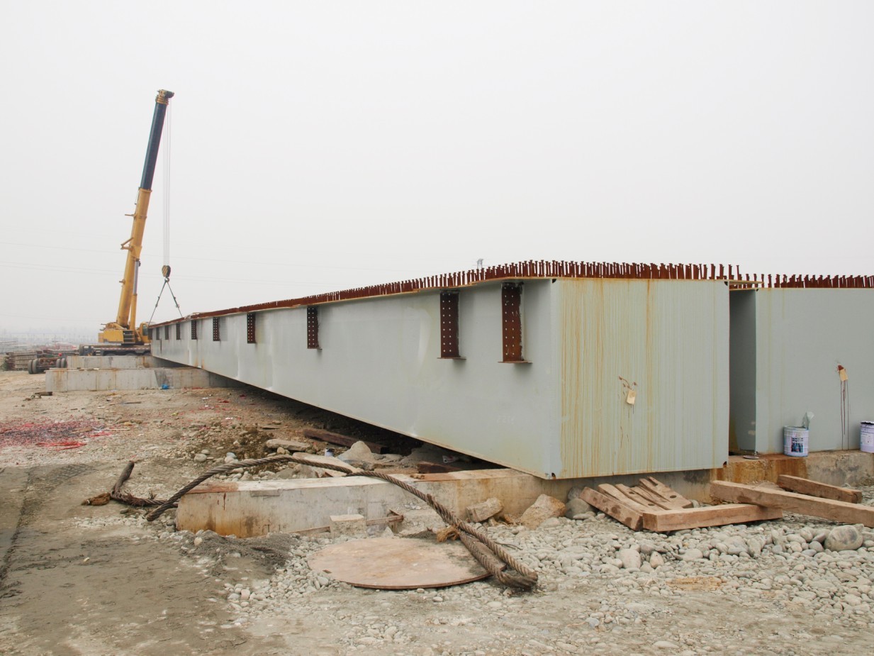 跨越成雅高速公路的成都雙華路(牧華路)遷建成雅互通52米跨度鋼箱橋梁,該工程位于成都雙流縣有著“千年麻羊鄉(xiāng)、現(xiàn)代工業(yè)鎮(zhèn)”的黃甲鎮(zhèn)。此工程鋼結(jié)構(gòu)專業(yè)工程量達到2000多噸。其中鋼箱梁跨度52米,寬度5.4米,高度2.4米,單個構(gòu)件重量達162噸。
